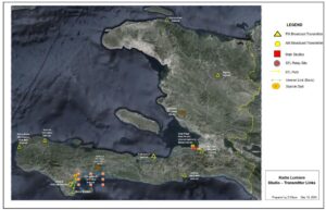 Map of stations and transmitters across Haiti.